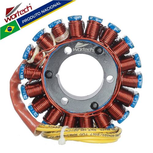 Marca : Wortech (Indústria Brasileira) Fabricação Exclusiva Instalação: Produto somente com os cabos, será necessário utilizar borracha, conectores e pulsador da peça do cliente. Código: W-ES/465 Características do produto: -Fio de cobre esmaltado de 200° -Resina : isolamento a base de cerâmica resistente a 1000° -Chicote : Cabos de silicone resistente a 200°-Rebobinamento dentro dos padrões do fabricante originalDimensões da carcaça: -Diâmetro Externo: 93,5 mm-Diâmetro Interno: 35 mm-Espessura da parte de fixação: 21,5 mmItens Inclusos: -01 > Estator-01 > Certificado de garantiaGarantia total de 12 meses