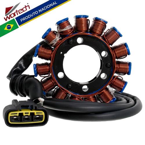 Marca : Wortech (Indústria Brasileira) Fabricação ExclusivaInstalação: Não é necessário adaptações-Aplicação:R1 YZF (2009-2014)Características do produto:-Fio de cobre esmaltado de 200° -Resina : isolamento a base de cerâmica resistente a 1000° -Chicote : Cabos de silicone resistente a 200°-Conector: Em Nylon de alta qualidade -Rebobinamento dentro dos padrões do fabricante originalDimensões da carcaça:-Diâmetro Externo: 105 mm-Diâmetro Interno: 42 mm-Espessura da parte de fixação: 16 mmConexões:-01 > Conector 3 vias com 3 cabos brancoItens Inclusos:-01 > Estator-01 > Certificado de garantia- Garantia total de 12 meses