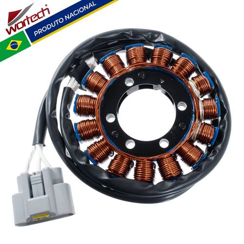 Marca : Wortech (Indústria Brasileira) Fabricação ExclusivaInstalação: Não é necessário adaptações -Aplicação: Zx10r (2011-2024)Zx6r (2013-2018)Características do produto: -Fio de cobre esmaltado de 200° -Resina : isolamento a base de cerâmica resistente a 1000° -Chicote : Cabos de silicone resistente a 200°-Conector: Em Nylon de alta qualidade -Rebobinamento dentro dos padrões do fabricante originalDimensões da carcaça:-Diâmetro Externo: 105 mm-Diâmetro Interno: 42 mm-Espessura da parte de fixação: 12 mmConexões: -01 > Conector 3 vias com 3 cabos brancos Itens Inclusos: -01 > Estator-01 > Certificado de garantia- Garantia total de 12 meses