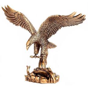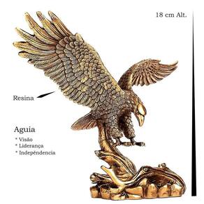 Estatua Águia Resina Dourado Envelhecido 18 Cm Alt. 25 Larg. Embalagem: 1 Estatua Aguia em Resina Cor Ouro Velho Outras informações do Produto: Tamanho:Altura: 18 CmLargura: 25 cm de Asa a AsaLargura Base: 11,5Material: ResinaCor: Ouro Velho (Dourado) A Aguia é um Ave Topo de Cadeia, é considerada o Rei das Aves, Representa A Força, a Coragem e o Poder, muito utilizada por Grande Nações,E até por Presidentes de Empresas. Significado da Águia O significado da águia é frequentemente associado a coragem e força. É chamada de rainha dos céus ou de rainha das aves pela sua soberania, beleza e imponência. Na mitologia grega, a águia é o símbolo de Zeus, o mais poderoso dos deuses. Na cultura celta é símbolo do renascimento e renovação. Para os antigos egípcios, era o símbolo da vida eterna. A Águia simboliza nobreza, majestade, liberdade, agilidade, Força, Poder. A Águia como representação arquetípica deve ser usado com muito cuidado, é um animal com muito poder e força, Jamais use em uma empresa que trabalhe, a não ser que seja o Presidente ou Dono da Empresa. Seus significados vão além, esta diretamente ligado a Prosperidade. Aguia, Visão, Liderança e Indepêndencia. Marca: Ayliv
