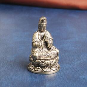 Material: latão Tamanho: 35 mm* 55 mm Peso: 108 g Acabamento elegante em latão antigo: esta requintada estátua do Buda Guanyin apresenta detalhes intrincados, cuidadosamente trabalhados em latão de alta qualidade com um belo acabamento envelhecido. Símbolo de Compaixão e Misericórdia: Guanyin, conhecido como o Bodhisattva da Compaixão, é retratado em uma pose pacífica e meditativa, perfeita para trazer calma e serenidade ao seu espaço. Tamanho ideal para exibição: com dimensões de 35 mm x 55 mm e pesando 108 g, esta estatueta pequena, mas detalhada, se encaixa perfeitamente em prateleiras, mesas ou altares pessoais. Escultura espiritual atemporal: O design do assento de lótus e os graciosos gestos com as mãos fazem desta estátua de Buda uma adição atemporal à sua coleção espiritual ou decorativa. Perfeita para meditação ou decoração de casa: esta estátua é perfeita para aprimorar seu canto de meditação, sala de estar ou escritório, adicionando uma presença pacífica e espiritual ao ambiente.