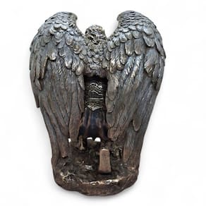 Características do Produto: Altura: 21 cm Material: resina premium Acabamento: Pintura artesanal com detalhes em tons escuros e metálicos Indicações: Decoração esotérica, colecionadores, altares espirituais, fãs da mitologia celta e das lendas do Rei Arthur