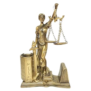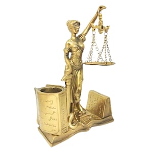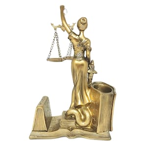 Estátua Dama Da Justiça Thêmis Resina Porta Caneta e Cartão Dourado
