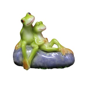 Material: Resina Tamanho: 6,3 × 3 × 5,2 cm Peso: 45 g ['• Design adorável de sapo relaxante — apresenta um charmoso casal de sapos descansando em uma rocha, adicionando um toque doce e tranquilo à decoração do jardim ou à cena interna. ', '• Material de resina durável — Feita com resina de qualidade, esta estátua é resistente às intempéries e adequada para ornamentos externos em pátios, gramados, lagoas ou varandas. ', '• Acabamento vívido pintado à mão — Tons verdes brilhantes e expressões realistas realçam o caráter lúdico da escultura, tornando-a uma figura de destaque entre plantas ou pedras. ', '• Perfeito para mini paisagens — Ideal para jardins de fadas, terrários, configurações de bonsai, aquários ou displays de mesa, trazendo charme inspirado na natureza a qualquer espaço. ', '• Colocação compacta e fácil — leve e estável, esta figura de sapo pode ser posicionada no solo, grama, pedras ou prateleiras, oferecendo opções flexíveis de decoração.']