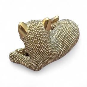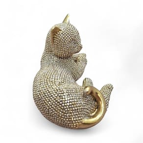 Estátua de Gato Deitado em Resina Dourada com Brilho 11 cm