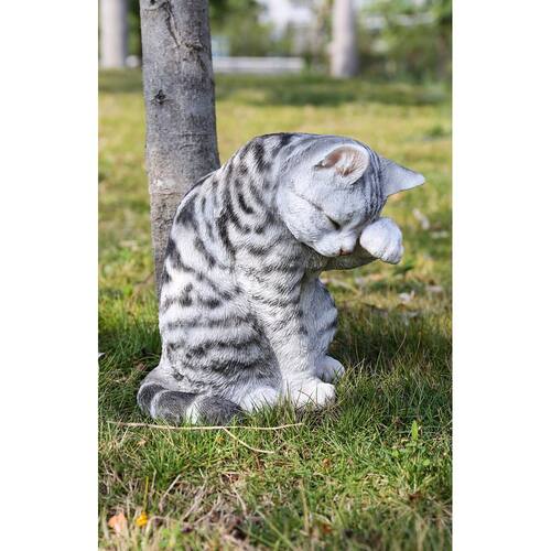 Hi- Line Gift 87698-B Estátua de gato malhado cinza lavagem American Shorthair