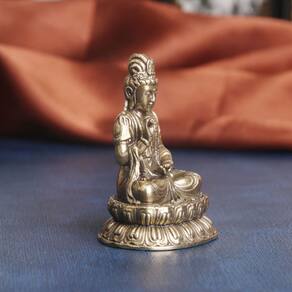 Material: latão Tamanho: 53 mm* 38 mm Peso: 100 g Artesanato requintado: feita de latão antigo de alta qualidade, esta estátua de Avalokiteshvara apresenta detalhes intrincados, mostrando o Bodhisattva em uma postura calma e meditativa. Símbolo da Compaixão: A estátua retrata o Buda realizando o “Gesto Destemido”, simbolizando paz, proteção e compaixão por todos os seres. Design elegante: com seu acabamento vintage em latão, a estátua destaca detalhes finos, como vestes esvoaçantes e assento de lótus, incorporando a arte budista tradicional. Tamanho perfeito: com 5,3 cm de altura, esta estatueta é perfeita para decoração de casa, altares, espaços de meditação ou como presente espiritual para seus entes queridos. Uso versátil: ideal para exibição em prateleiras, mesas ou altares, ele traz serenidade e energia espiritual a qualquer sala de estar, escritório ou canto de meditação.