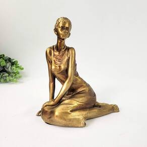 Estátua De Mulher Dourada Sentada 19x16x11cm Resina