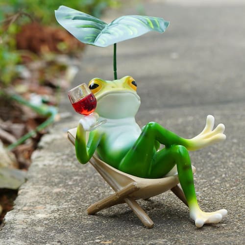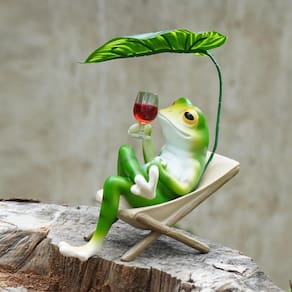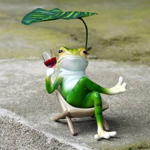 -?ADORÁVEL DESIGN?Um sapo de lazer está deitado em uma espreguiçadeira com guarda-chuva de folhas e bebendo vinho tinto. Este design criativo traz muito relaxamento e diversão ao seu jardim ou casa.