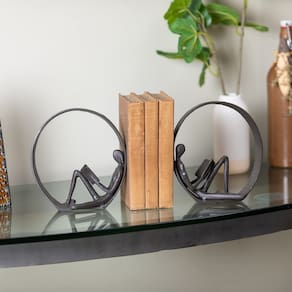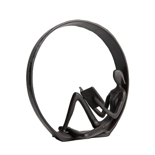 A escultura de ferro Danya B. Encircled Reader é a adição perfeita para qualquer ávido colecionador de livros, leitor voraz ou escritório doméstico ou biblioteca da família que ama livros. Esta estátua lindamente abstrata retrata uma figura esbelta reclinada ligeiramente em um círculo de ferro enquanto lê serenamente. A natureza abstrata desta estátua permite que seus espectadores se identifiquem com o amor pela leitura tanto em crianças quanto em adultos. Embora a estátua inspire uma sensação de elegância em sua forma e construção, seu design abstrato e divertido também adiciona um toque caprichoso a qualquer cômodo em que você escolher colocá-la. Esta escultura define um tom antigo e quente com seu brilho marrom escuro à prova de manchas na estrutura de ferro. Sua aparência clássica certamente embelezará qualquer escritório doméstico ou biblioteca. Cada uma dessas esculturas exclusivas é cuidadosamente feita à mão usando um método de fundição em areia. Cada escultura pesa 1 kg e mede 16,5 cm de largura, 8,9 cm de profundidade e 19 cm de altura. Com este tamanho portátil e peso durável, esta pequena escultura pode adornar facilmente a maioria das mesas, prateleiras ou mesas. Basta colocar a estátua em qualquer lugar que você quiser e você está pronto para uma bela exibição. Esta estátua simplesmente elegante é ótima para qualquer cômodo da casa onde os livros são mantidos, como a sala de leitura da família, escritório, quarto, berçário ou recanto de leitura. Desde seus detalhes complexos até seu belo acabamento, esta escultura de leitor de ferro é uma ótima adição a qualquer casa, escritório ou biblioteca para adicionar um novo toque de classe e sofisticação antiquada onde quer que você decida colocá-la. Esta escultura de leitura circundada está disponível como um único homem, mulher solteira ou conjunto de opções de leitores masculinos e femininos para melhor se adequar à sua família e decoração.