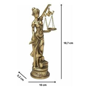 Estátua Deusa Dama Da Justiça Thêmis Direito Pequena Gold Nossa Estátua Deusa Dama Da Justiça Themis ou Têmis , conhecida como a personificação da justiça, das leis e dos costumes divinos. O significado de seu nome é: aquela que é posta, colocada . Empunha a balança, como quem equilibra a razão com o julgamento. Caso esteja pensando em complementar a sua decoração, aposte nas estatuetas, elas deixarão o ambiente mais charmoso e sofisticado. Experimente usar a sua imaginação para combinar essa peça a outras já existentes no ambiente escolhido. Veja os significados dos atributos relacionados à justiça desta estatueta: Olhos Vendados: A justiça é cega. Isso não significa, em tese, que a justiça não vê o que acontece, mas designa a imparcialidade. Balança: Significa equivalência entre o crime cometido e a pena aplicada. Se toda ação tem as suas consequências, a balança representa a exata medida entre ambas as coisas. Espada: A espada representa a coerção, a força que deve ser empregada para combater a injustiça. Tamanhos disponÃveis: Pequeno: 10 x 5,2 x18,7cm; Médio: 10,5 x 7 x 22cm; Grande: 13 x 8 x 29cm. Caso queira outro tamanho, pedir o link para o vendedor na aba de perguntas. Este anuncio é o tamanho pequeno. do vendedor: 7 dias Marca: Não Informado