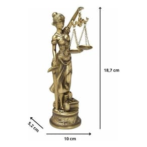 Estátua Deusa Dama Da Justiça Thêmis Direito Pequena Gold Nossa Estátua Deusa Dama Da Justiça Themis ou Têmis , conhecida como a personificação da justiça, das leis e dos costumes divinos. O significado de seu nome é: aquela que é posta, colocada . Empunha a balança, como quem equilibra a razão com o julgamento. Caso esteja pensando em complementar a sua decoração, aposte nas estatuetas, elas deixarão o ambiente mais charmoso e sofisticado. Experimente usar a sua imaginação para combinar essa peça a outras já existentes no ambiente escolhido. Veja os significados dos atributos relacionados à justiça desta estatueta: Olhos Vendados: A justiça é cega. Isso não significa, em tese, que a justiça não vê o que acontece, mas designa a imparcialidade. Balança: Significa equivalência entre o crime cometido e a pena aplicada. Se toda ação tem as suas consequências, a balança representa a exata medida entre ambas as coisas. Espada: A espada representa a coerção, a força que deve ser empregada para combater a injustiça. Tamanhos disponÃveis: Pequeno: 10 x 5,2 x18,7cm; Médio: 10,5 x 7 x 22cm; Grande: 13 x 8 x 29cm. Caso queira outro tamanho, pedir o link para o vendedor na aba de perguntas. Este anuncio é o tamanho pequeno. do vendedor: 7 dias Marca: Não Informado Ean: 7794661722731