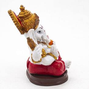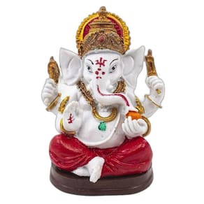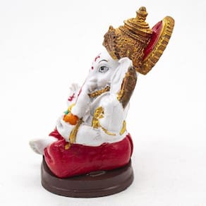 Estátua Ganesha Sentado Branco Resina 11 cm Ganesha: Filho mais velho de Shiva e Parvati. Tem uma enorme cabeça de elefante em um corpo de menino. Conhecido como aquele que destrói os obstáculos e ajuda na conquista da fortuna. Dimensões: altura: 11 cm - Largura: 8 cm - Profundidade: 8 cm Dimensões aproximadas do produto. Produto pintado a mão, podendo sofrer variações de cores. Marca: Amém Decoração Religiosa Ean: 7890499250467