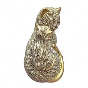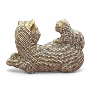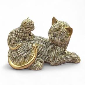 Estátua Gatinho e Mãe Deitados Resina Dourada Brilho 11 cm