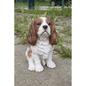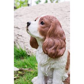 Estátua sentada Hi Line King Charles Spaniel, marrom e branca, 9,2 polegadas de altura