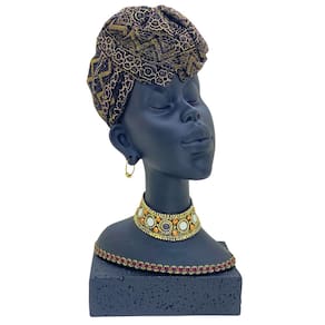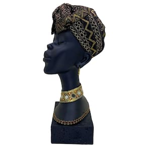 Figura Decorativa Estatueta Busto Africana 36 x 20 x 19 cm, uma peça única que eleva a decoração com sofisticação e autenticidade cultural. Esta estatueta retrata a beleza e a força da cultura africana, expressa em detalhes delicados e acabamento primoroso. Seu design incorpora elementos como o turbante texturizado, acessórios dourados e pedrarias vibrantes, conferindo um toque artístico e elegante ao ambiente.