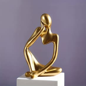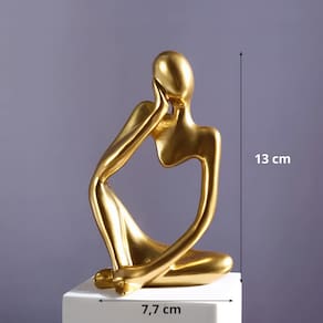 Estátua Pensador Enfeite Estante Sala dourado resina premium