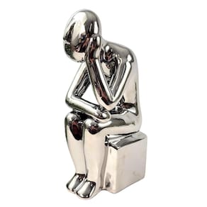 Estátua Pensamento Pessoa Banqueta 27Cm Decoração Prateada