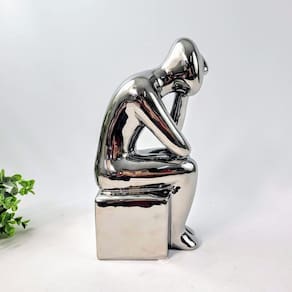 Estátua Pensamento Pessoa Banqueta 27cm Decoração Prateada