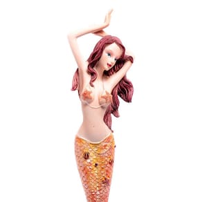 Estatua sereia cor laranja em resina alto poder sedução Embalagem: 1 escultura sereia em resina laranja
