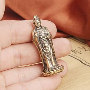 Material: latão Tamanho: 49 mm* 19 mm Peso: 100 g Design requintado: uma estátua antiga de Guanyin de latão lindamente detalhada, capturando o sereno e compassivo Kuan Yin em uma pose graciosa em pé. Material premium: feito de latão de alta qualidade com acabamento dourado antigo, garantindo uma presença atemporal e pacífica em qualquer espaço. Tamanho perfeito: medindo 49 mm* 19 mm e pesando 100 g, esta estatueta compacta e elegante é ideal para exibição em prateleiras, mesas ou espaços de meditação. Símbolo da Compaixão: Kuan Yin é reverenciado como um símbolo de misericórdia, ideal para criar uma atmosfera pacífica e calma e aprimorar as práticas de meditação. Decoração versátil: perfeita para casa, escritório ou espaços espirituais, esta estátua de Guanyin adiciona um toque de serenidade e energia espiritual a qualquer ambiente.