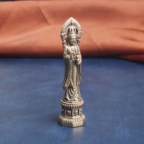 Material: latão Tamanho: 77 mm* 20 mm Peso: 100 g Design tradicional de Guanyin: Esta escultura de latão vintage mostra o Nanhai Guanyin, também conhecido como Avalokitesvara, o Bodhisattva da Compaixão, simbolizando paz e serenidade. Material de latão premium: feita de latão durável com acabamento antigo, esta estátua exala beleza atemporal e adiciona significado espiritual a qualquer espaço. Tamanho compacto: medindo 77 mm x 20 mm e pesando 100 g, esta estátua pequena, mas detalhada, é um complemento perfeito para sua mesa, altar ou espaço de meditação. Símbolo da Compaixão: Guanyin, segurando um lótus na mão, personifica misericórdia e cura, tornando esta peça um ornamento espiritual perfeito para promover a paz interior e o bem-estar. Artesanato artesanal: cada figura é cuidadosamente feita à mão, garantindo detalhes intrincados e uma adição única e de alta qualidade à decoração de sua casa ou coleção religiosa.