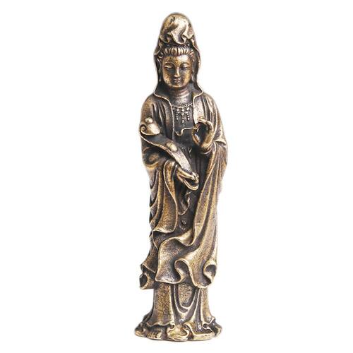 Material: latão Tamanho: 65 mm* 17,5 mm Peso: 100 g Design tradicional de Guanyin: esta requintada estátua de latão apresenta Nanhai Guanyin (Avalokitesvara), conhecido como o Bodhisattva da Compaixão, segurando um lótus para simbolizar misericórdia e paz. Material de latão premium: feita de latão de alta qualidade com acabamento antigo, esta estátua foi projetada para trazer elegância e significado espiritual a qualquer espaço. Compacta e elegante: com 65 mm x 17,5 mm e pesando 100 g, esta estatueta pequena e detalhada é perfeita para um altar, espaço de meditação ou como peça decorativa para sua casa ou escritório. Símbolo de compaixão e paz: Guanyin é reverenciada por seu papel em trazer cura e paz, tornando isso um ornamento espiritual significativo para seu crescimento e bem-estar pessoal. Artesanato artesanal: cada estátua é cuidadosamente feita à mão para garantir detalhes finos, proporcionando uma adição única e de alta qualidade à sua coleção.