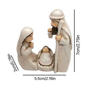 Material: Resina Tamanho do produto: 5,5 cm/2,16 pol* 2 cm/0,78 pol* 7 cm/2,75 polegadas Peso do produto: 300 g Estatuetas encantadoras da Sagrada Família — escultura de presépio simples e elegante com Maria, José e o Menino Jesus em um design branco marfim inspirado à mão. Material de resina durável — Feito de resina premium com superfície lisa e detalhes finos, garantindo estabilidade e exibição duradoura. Mini escultura compacta — tamanho pequeno de 7 cm (2,75 polegadas) de altura × 5,5 cm (2,16 polegadas) de comprimento × 2 cm (0,78 polegadas) de largura, leve de 300 g, perfeita para mesa, estante de livros ou mesa de oração. Ornamento decorativo elegante — Adiciona um toque pacífico e espiritual à sala de estar, escritório, escritório, varanda ou canto de meditação. Presépio inspirado na fé — Adequado para decoração de Natal ou decoração religiosa durante todo o ano, oferecendo um símbolo de serenidade e devoção.