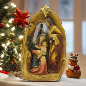 Material: Resina Tamanho do produto: 10,5 m/4,25 pol* 16,2 cm/6,38 polegadas Peso do produto: 300 g Bela escultura de presépio — Conjunto de estátuas de resina requintadas retratando a Sagrada Família com o Menino Jesus, Maria e José sob uma estrela-guia, simbolizando paz, fé e devoção. Artesanato em resina premium — Feito de resina durável com detalhes finamente pintados e cores vibrantes, projetado para uso e exibição duradouros. Enfeite decorativo de Natal — Ideal para decoração de Natal, adicionando uma atmosfera espiritual à sua casa, igreja ou canto de oração. Tamanho compacto e pronto para exibição — mede 16,2 cm (6,38 pol.) de altura × 10,5 cm (4,25 pol.) de largura, leve 300 g, perfeito para prateleiras, tampos de mesa ou expositores. Estatuetas inspiradas na fé — Uma escultura significativa para enriquecer as celebrações sazonais, fornecendo uma peça central serena para decoração de presépios ou ornamentação religiosa durante todo o ano.