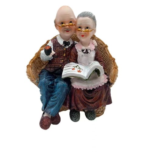 Material: Resina Tamanho do produto: 11,5 cm/4,52 pol* 11 cm/4,33 pol* 14 cm/5,51 polegadas Peso do produto: 300 g Design realista de casal de idosos — Apresenta um charmoso homem e uma mulher sentados juntos em uma cadeira de vime, vestindo roupas detalhadas em estilo vintage, criando uma cena emocionante. Material de resina premium — Feito de resina durável com detalhes finos pintados à mão, garantindo cores duradouras e um acabamento suave adequado para exibição em ambientes internos. Tamanho perfeito para exibição — mede aproximadamente 5,5 x 4,5 x 4,3 polegadas, tornando-o ideal para mesas, prateleiras, mesas de escritório ou decorações de lareira. Símbolo de amor e companheirismo — Representa calor, felicidade e companheirismo para toda a vida, adicionando um toque nostálgico a qualquer decoração de casa. Ornamento doméstico versátil — funciona como uma estatueta decorativa para salas de estar, escritórios, estantes de livros e mesas de cabeceira, realçando ambientes aconchegantes e vintage.
