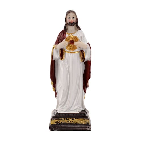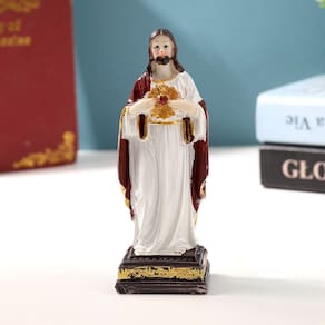 Material do produto: resina Tamanho do produto: 4,5 cm de comprimento * 12,5 cm de altura * 3,5 cm de largura Peso do produto: 122 g de peso líquido Estatueta de Jesus do Sagrado Coração — Escultura detalhada de Jesus com design de coração sagrado, vestindo um manto esvoaçante e de pé sobre uma base quadrada. Material de resina durável — Feito com resina de qualidade, superfície lisa e acabamento pintado à mão garantem uma beleza decorativa duradoura. Estilo religioso clássico — Design de arte escultórica tradicional, adicionando um toque solene e espiritual ao espaço da casa, do escritório ou do altar. Tamanho e peso compactos — mede aproximadamente 4,5 × 3,5 × 12,5 cm, peso líquido 122 g, adequado para exibição em prateleiras, mesas ou cantos de oração. Decoração versátil — Funciona como ornamento religioso, estatueta colecionável ou escultura decorativa, aprimorando os interiores modernos e tradicionais.