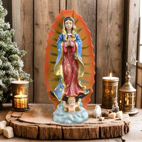 Material: Resina Peso: 119,2 g Tamanho: 6 cm × 4,2 cm × 12,4 cm Design de Nossa Senhora de Guadalupe — Estatueta detalhada representando a Madonna em oração com raios de auréola e anjo aos pés, simbolizando paz e devoção. Cores vivas pintadas à mão — Feita em resina com ricos tons de vermelho, azul e dourado, destacada com acabamentos detalhados para uma aparência marcante e elegante. Estilo clássico de escultura — Estilo tradicional de arte religiosa, combinando elementos simbólicos com artesanato em resina suave para uma decoração atemporal. Uso versátil de enfeites — Perfeito para exibição em prateleiras, mesas ou salas de estar, adicionando significado espiritual e cultural à sua decoração de interiores. Compacto e decorativo — mede aproximadamente 6 cm × 4,2 cm × 12,4 cm, pesa 119 g, é leve, mas detalhado, adequado para colocação em casa, escritório ou altar.