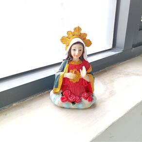 Material: Resina Tamanho do produto: 8,5 cm/3,35 polegadas* 6,5 cm/2,56 polegadas* 12,5 cm/4,92 polegadas Peso do produto: 185 g Design do Sagrado Coração — Apresenta Mary com coroa dourada, roupão vermelho detalhado e motivo de coração, simbolizando fé e devoção em um estilo tradicional renascentista. Artesanato em resina — Feito de resina durável com detalhes finos pintados à mão, garantindo cores vibrantes e qualidade duradoura. Tamanho compacto — mede aproximadamente 12,5 cm/4,92 polegadas de altura, adequado para exibição em prateleiras, mesas, altares domésticos ou cantos espirituais. Ornamento elegante — adiciona um toque decorativo significativo com rosas na base e uma expressão facial intrincada, aprimorando interiores religiosos ou clássicos. Uso versátil — Perfeito como escultura para espaços espirituais, salas de meditação ou como peça central ornamental para decoração de casa.