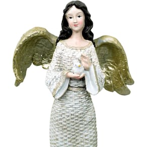 1 Estatueta Anjo Decorativo Com Pombinha Branca 38cm;