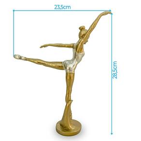 Descrição do produto: uma obra de arte elegante e graciosa que captura a leveza e a beleza do ballet Com seus movimentos fluidos e expressões delicadas, a bailarina é representada em uma pose clássica, com um sorriso sereno e uma postura impecável. Feita em resina de alta qualidade, a estatueta exibe um acabamento refinado, perfeito para quem aprecia a estética e a técnica do ballet. Ideal para decorar salas de estar, estúdios de dança ou qualquer ambiente que valorize a beleza, a expressão e a disciplina da dança, essa peça é uma homenagem à graça e à elegância em sua forma mais pura. altura: 28,5cm Largura: 8cm Comprimento: 23,5cm Peso: 0,296kg Material: resina
