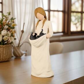Material: Resina Tamanho do produto: 6* 5* 15 cm Peso do produto: 150 g Charming Cat Lover Design — Apresenta uma mulher segurando suavemente um gato preto nos braços, simbolizando o amor e o vínculo entre donos de animais e seus animais, perfeito para amantes de gatos. Material de resina durável — Feita de resina de alta qualidade com acabamentos suaves e detalhados, esta estatueta é durável e visualmente impressionante, com detalhes vibrantes pintados à mão. Tamanho perfeito para exibição — Com 6 polegadas de altura, esta linda escultura é perfeita para adicionar um toque pessoal a mesas, prateleiras ou qualquer cômodo da casa. Ideal para mães de animais de estimação e entusiastas de gatos — Uma peça sincera para amantes de gatos, esta estatueta celebra o vínculo especial entre animais de estimação e seus donos, tornando-a um ornamento decorativo significativo. Decoração versátil para casa ou escritório — Funciona bem em uma variedade de espaços, de salas de estar a mesas de escritório, como uma adição deliciosa e atenciosa a qualquer decoração com tema de gato.