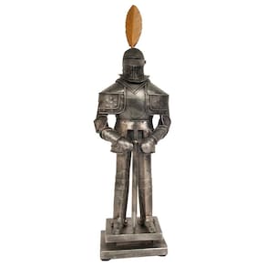 - Tela realista: equipado com uma espada soldada à mão, este cavaleiro pronto para a batalha fica firme em um desktop ou console, tornando-o uma peça decorativa impressionante e funcional.