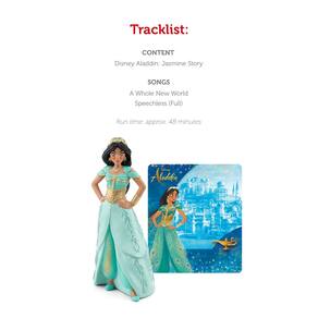 Este Tonie convida você a experimentar a jornada ousada de Jasmine do ponto de vista dela, apresentando sua história icônica e canções amadas. Jasmine é incrivelmente independente e forte. Ela não tem medo de falar o que pensa, não importa quem ela esteja enfrentando, e não hesitará em defender o que é certo. A princesa de Agrabah, Jasmine é extremamente compassiva e atenciosa com as pessoas em seu reino, sua família e seus amigos — especialmente sua amiga mais leal, seu tigre Rajah. Ela sabe que não deveria deixar ninguém decidir seu futuro e, em sua jornada ousada além das paredes do palácio, Jasmine sai de sua zona de conforto, criando um mundo totalmente novo e uma nova era para Agrabah. - Embarque em sua jornada ousada além das paredes do palácio enquanto Jasmine sai de sua zona de conforto para criar um mundo totalmente novo e um futuro mais brilhante para Agrabah. - Ensina as crianças sobre perseverança, bondade e coragem. - Inclui personagem de brinquedo Jasmine com 2 músicas, 1 história e tempo total de execução de aproximadamente 48 minutos. Idade recomendada: 6+, idioma: inglês. Narrado por Emily O'Brien. Com vozes autênticos da Disney Aladdin: filme de ação ao vivo, incluindo Mena Massoud, Naomi Scott, Marwan Kenzari, David Negahben e Nasim Pedrad. - Tracklist: História: 1) Disney Aladdin: Jasmine. Músicas: 2) Um mundo totalmente novo, 3) Sem palavras (completo). - Requer Toniebox Audio Player para reproduzir áudio; vendido separadamente.