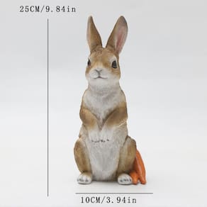 Material: Resina Tamanho: consulte a foto Peso: 450 g ['Charmosa escultura de jardim: esta adorável estátua de coelho apresenta um coelhinho fofo segurando uma cenoura, tornando-a o complemento perfeito para seu jardim, pátio ou quintal para um toque rústico e extravagante. ', 'Construção durável em resina: feita de resina de alta qualidade, esta estátua é resistente às intempéries, garantindo que manterá sua beleza e charme ao ar livre em todas as estações. ', 'Perfeita para decoração de primavera: ideal para temas de primavera e Páscoa, esta escultura de coelho traz uma sensação de alegria e frescor ao seu jardim, canteiros de flores ou pátios. ', 'Posicionamento versátil: Seu tamanho compacto permite que ele se encaixe perfeitamente em vários espaços de jardim, seja perto de flores, ao longo de um caminho ou como peça central em sua decoração externa. ', 'Deliciosos ornamentos ao ar livre: esta linda estátua de coelhinho é uma ótima maneira de adicionar personalidade ao seu jardim, criando uma atmosfera agradável e acolhedora para a família e os convidados']