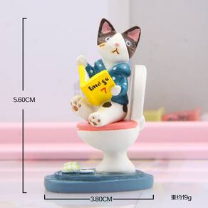 Material: Resina Tamanho: consulte a imagem Peso: 40 g ['Humorous Cat DesignCom um gato sentado no vaso sanitário enquanto lê um livro, esta figura criativa adiciona um toque divertido e único à decoração do seu jardim ou espaço interno. ', 'Escultura de resina durável Feita com resina de alta qualidade, esta estátua robusta é resistente às intempéries e adequada para ornamentos externos em pátios, quintais ou varandas. ', 'Ornamentos de jardim em miniaturaPerfeita para vasos suculentos, jardins de fadas ou decoração de mesa, esta figura em miniatura traz charme e personalidade a qualquer cena decorativa. ', 'Detalhes pintados à mãoCada figura mostra um excelente artesanato com cores vivas e expressões realistas, tornando-a uma decoração de destaque entre as figuras de jardim. ', 'Decoração versátilIdeal para colocar em arranjos de plantas, mesas de escritório ou prateleiras domésticas, esta estátua de gato adiciona um toque artístico e humorístico ao ambiente.']