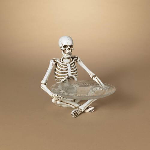 Adicione um toque de elegância assustadora às suas decorações de Halloween com a estatueta de esqueleto de Halloween da Gerson International com um prato de vidro transparente. Com 10,6 polegadas de altura, esta peça única combina charme assustador clássico com design moderno, tornando-a uma adição marcante à sua decoração sazonal.
