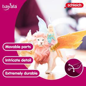 Fairy in Flight on Winged Lion schleich BAYALA com peças móveis, estatueta de fada de brinquedo removível montando um leão rosa mágico, para crianças de 5 a 12 anos - Voe: o leão alado e seu cavaleiro de brinquedo de fadas voam graciosamente pelo céu. Os rosas, dourados e azuis de BAYALA se refletem em suas asas brilhantes - Feita para a aventura: esta estatueta de fada ricamente pintada vem com ímãs embutidos para que ela fique segura em seu majestoso leão alado a caminho da próxima aventura - Asas móveis: prontas para decolar! As asas douradas do leão batem e giram e os braços de sua fada companheira se movem para aumentar as histórias emocionantes que você cria enquanto joga - O mundo de BAYALA: Onde as histórias mágicas começam. Aqui, você pode nadar em um lago, visitar as sereias de Meamare ou montar em um unicórnio schleich (não incluído) - Onde as histórias começam: explore o mundo de schleich e liberte as possibilidades ilimitadas de contar histórias e brincadeiras imaginativas. Nossos brinquedos e conjuntos de brinquedos realistas são feitos para durar gerações