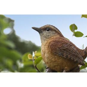 Presente Hi-Line várias estátuas de pássaro no toco (Carolina Wren)