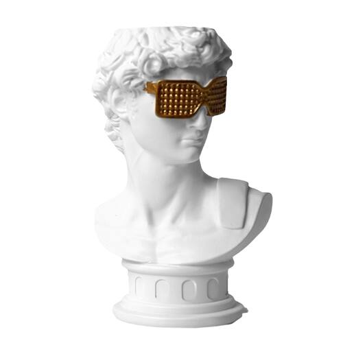 Material: Resina Tamanho: 10 cm* 9,5 cm* 16 cm Peso: 243 g Design moderno de David Bust: esta escultura de resina reimagina criativamente o busto clássico de David com óculos de sol modernos, mesclando arte clássica com moda contemporânea. Elegante e exclusivo: os óculos de sol estilosos e o acabamento branco liso adicionam um toque moderno a essa figura tradicional, tornando-a uma peça decorativa divertida e ousada. Artesanato em resina de alta qualidade: feita de resina durável, esta estatueta de 16 cm de altura apresenta detalhes nítidos e uma textura suave que garante estética e longevidade. Decoração versátil: ideal para salas de estar modernas, escritórios ou qualquer espaço que precise de um toque único e artístico, perfeito para estantes de livros, cornijas ou como peça central. Para iniciar uma conversa: essa figura divertida e artística certamente chamará a atenção e estimulará conversas, adicionando humor e sofisticação a qualquer decoração.