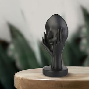 Material: Resina Tamanho do produto: 5,12 polegadas* 5,51 polegadas* 11,81 polegadas Peso do produto: 100gDesign abstrato: esta escultura de arte moderna apresenta um rosto minimalista e abstrato com as mãos segurando suavemente a cabeça, simbolizando contemplação e serenidade. Resina de alta qualidade: feita de resina durável, esta estatueta tem um acabamento elegante em preto fosco, oferecendo elegância e qualidade duradoura para a decoração de sua casa ou escritório. Tamanho perfeito: medindo 11,81 polegadas (30 cm), esta peça exclusiva é ideal para adicionar uma declaração ousada a qualquer sala de estar moderna, escritório ou espaço de escritório. Decoração versátil: ideal para ambientes contemporâneos, esta escultura aprimora qualquer espaço com seu design marcante e estética minimalista, cabendo perfeitamente em mesas ou prateleiras. Ideia de presente exclusiva: um presente atencioso e estiloso para amantes da arte, colecionadores ou qualquer pessoa que aprecie o design abstrato moderno na decoração de casa ou escritório.