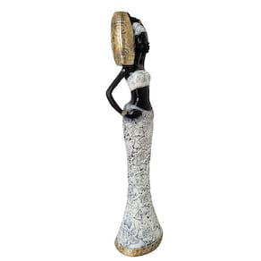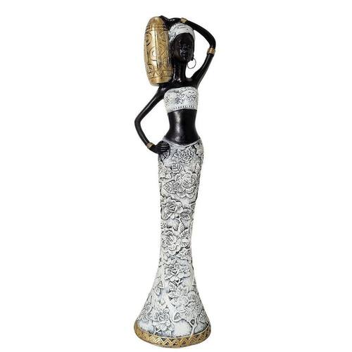 Conteúdo da embalagem: -01 Unidade Estatueta Decorativa Africana Com Vaso no ombro Resina Preto, Dourado e Branco 38cm Dimensões: 38cm x 9cm Material: Resina