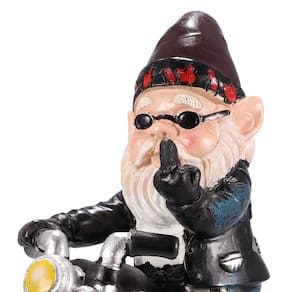 A estatueta do gnomo está andando de moto para receber seus convidados, seus amigos ou familiares acharão graça e alegria ao encontrá-la, tornando seu jardim ou quintal mais charmoso e atraente.