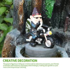 - Decoração criativa: a estatueta do gnomo está andando de moto para receber seus convidados, seus amigos ou familiares acharão engraçado e feliz ao encontrá-la, tornando seu jardim ou quintal mais charmoso e atraente.