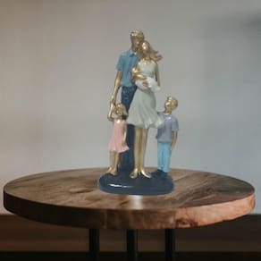 Design Encantador: Esta estatueta apresenta uma família composta por um pai, uma mãe, um filho, uma filha e um bebê. O design é delicado e expressivo, transmitindo uma sensação de união e afeto.