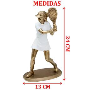 1 Estatueta Decorativa De Tenista Mulher Em Resina De 24cm;